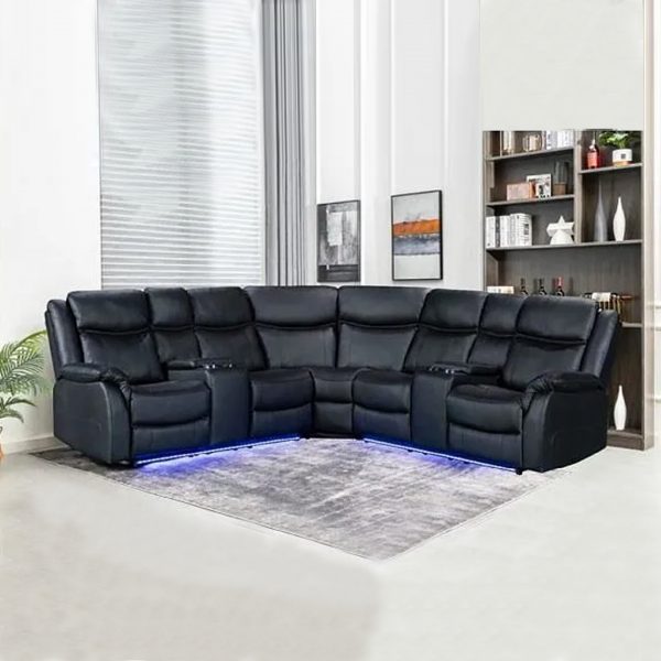 Experience ultimate comfort and contemporary style with the Grey Recliner Corner Sofa featuring built-in LED lights. This sleek and functional piece of furniture offers adjustable reclining options, ensuring a personalized relaxation experience. The integrated LED lights add a modern touch, creating an ambient atmosphere in your living space. Its corner design optimizes seating space while providing a cozy haven for family and guests. The neutral grey hue effortlessly complements various interior styles. Elevate your home entertainment and relaxation with this versatile and elegant Recliner Corner Sofa.