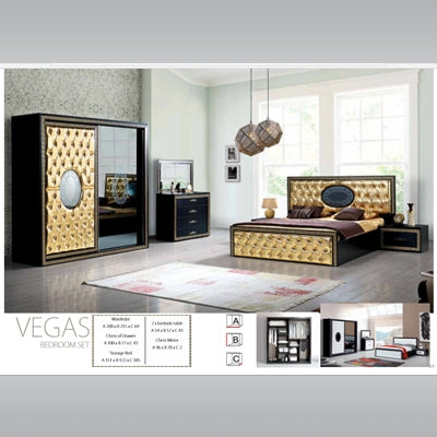 The Vigas bedroom has a dressing room with two sliding doors, one of which is upholstered and the other has a slightly smoky mirror giving it a modern and stylish design, the bed is upholstered both on the table and in the front; it has a metal mattress and storage space on the whole bed, a mirror comforter and 2 bedside tables with a drawer.